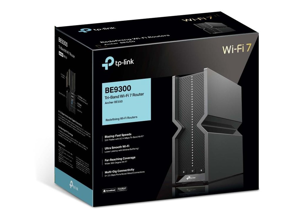 TP-Link Archer BE550 Wi-Fi 7 Tri-Band Router Experience lightning-fast 9214 Mbps Tri-Band Wi-Fi with Archer BE550. Wi-Fi 7 technology harnesses the power of the 6 GHz band,...