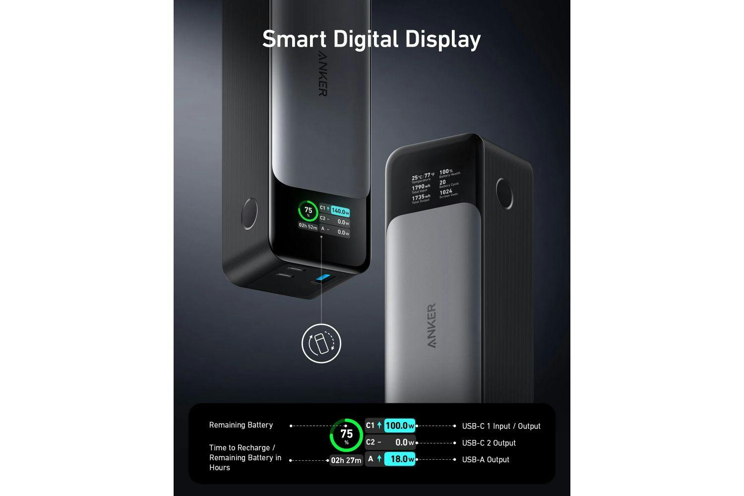 Ultra-Powerful Two-Way Charging Equipped with the latest Power Delivery 3.1 and bi-directional technology to quickly recharge the portable charger or get a 140W ultra-powerful...