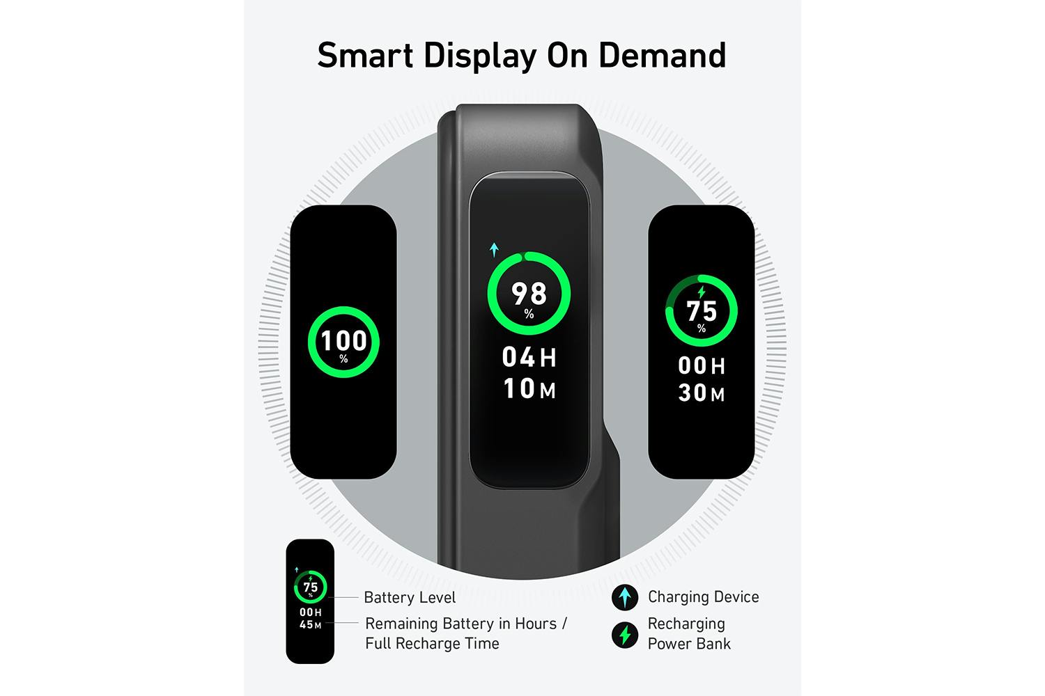 Charge at up to 15W wirelessly or 27W with USB C • Temperature sensor to prevent overheating • Smart display for remaining charge time