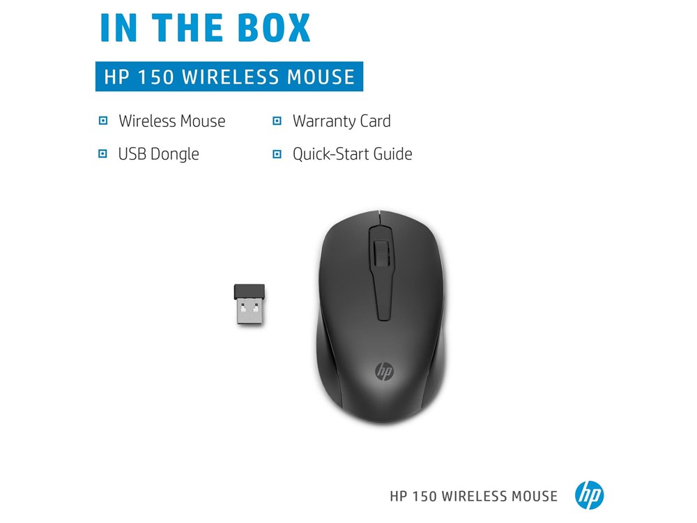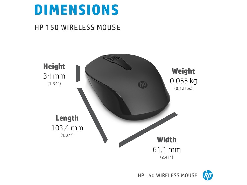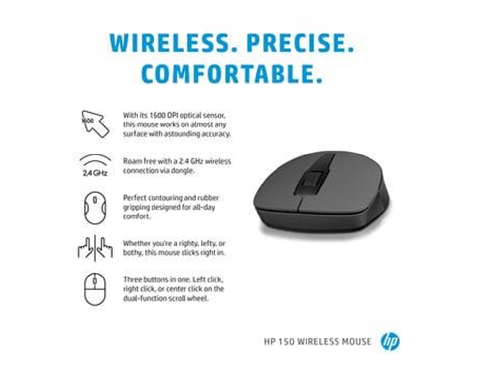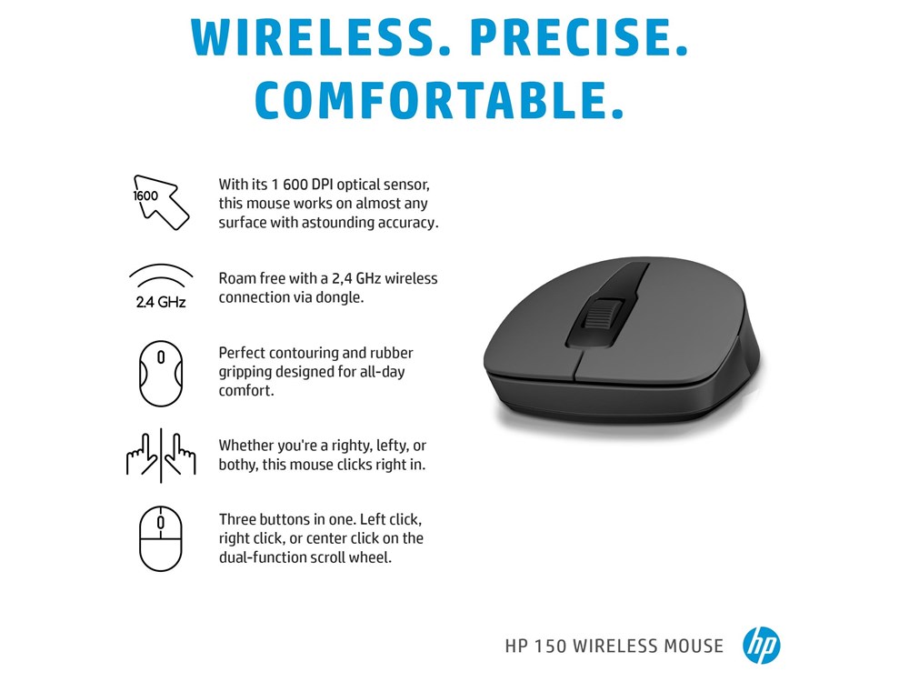 HP 150 Wireless Mouse - Ambidextrous Design - 3 Buttons, Scroll Wheel - Up to 10 Month Battery - Black Wireless. Precise. Comfortable This precise and comfy wireless mouse is...
