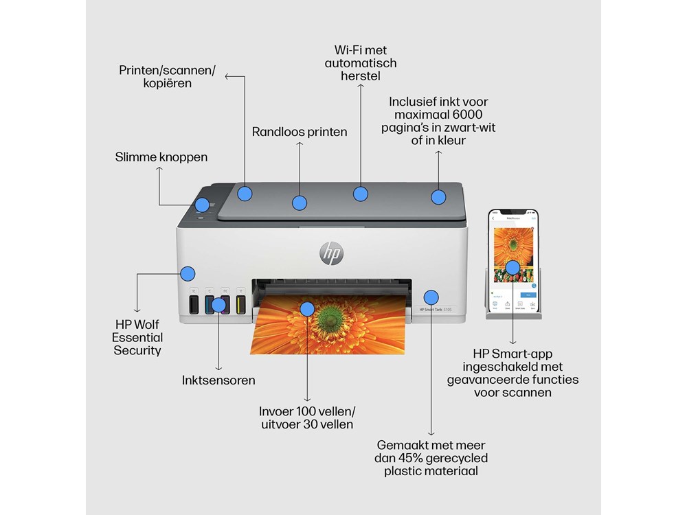HP Smart Tank 5105 Wireless All-in-One Colour Printer with up to 3 years of HP Ink Bottles included SUPERB COLOUR Print, copy and scan options for all your home office needs, with...