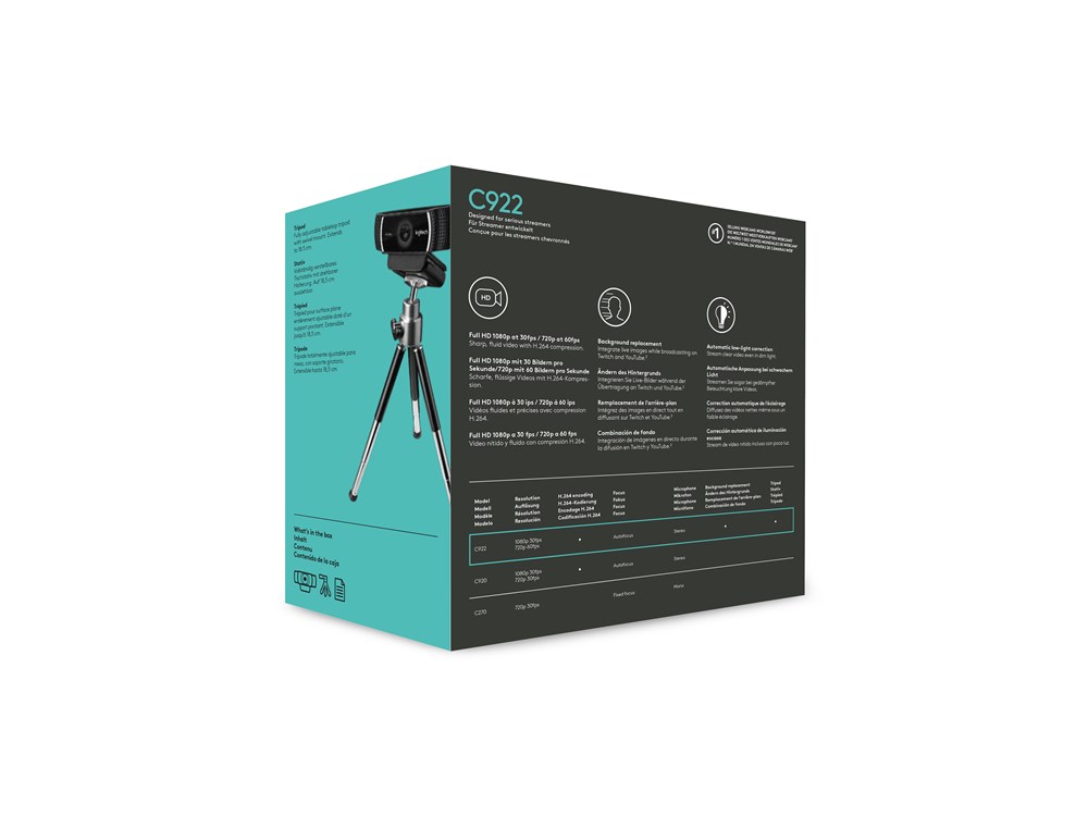 Logitech C922 Pro Stream Webcam with Microphone, Black Designed for serious streamers, the Logitech® C922 Pro Stream Webcam lets you stream and record vibrant, true-to-life HD...