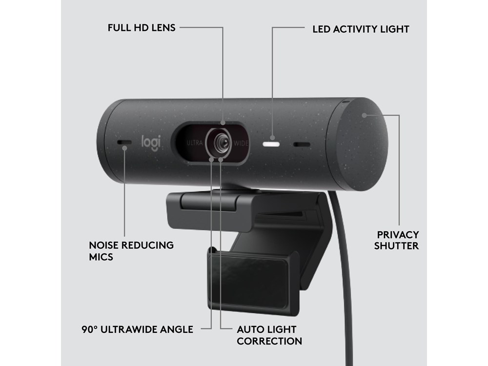 Logitech Brio 500 Full HD Webcam, USB-C Cable, Works with Teams, Google Meet, Zoom Look and feel like your best self in every meeting with Brio 500. Whether the lighting in your...