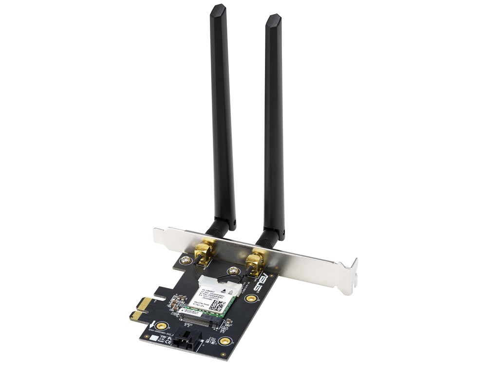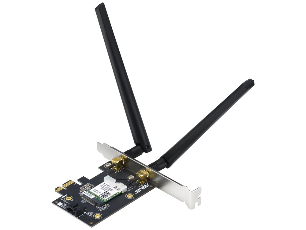 Brand Name: ASUS; Hardware Interface: PCI; Color: Black/White; Compatible Devices: PCI devices with WiFi 6 support; Item Dimensions L x W x H: 12.1L x 8.8W x 2.2H centimetres; Data Link Protocol: Bluetooth; Data Transfer Rate: 1800 Megabits Per Second