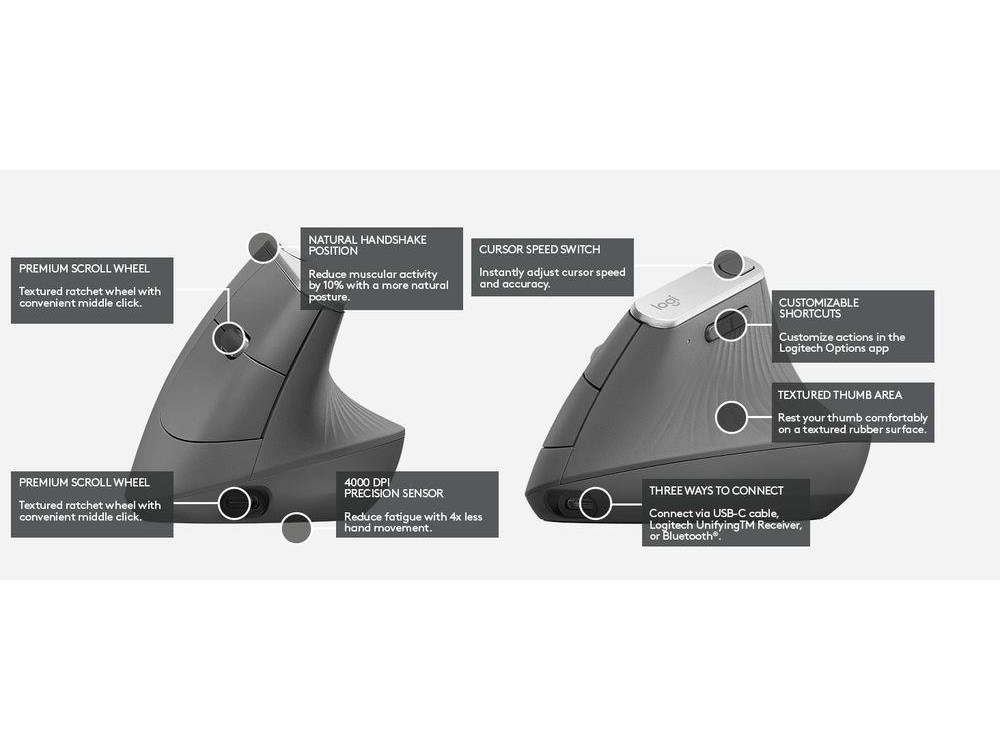 Logitech MX Vertical is an advanced ergonomic mouse that combines science-driven design with the elevated performance of Logitech’s MX series. The natural handshake position...