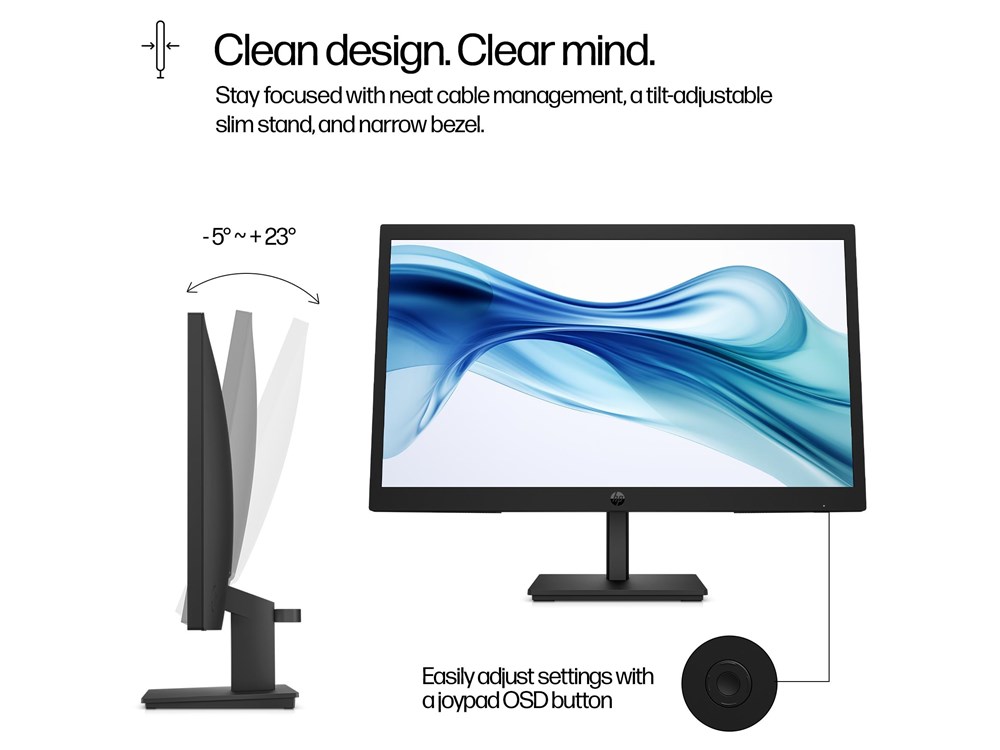 21.4 inch, Full HD VA display (1920 x 1080), 5 ms response time, 100 Hz refresh rate, VGA, HDMI