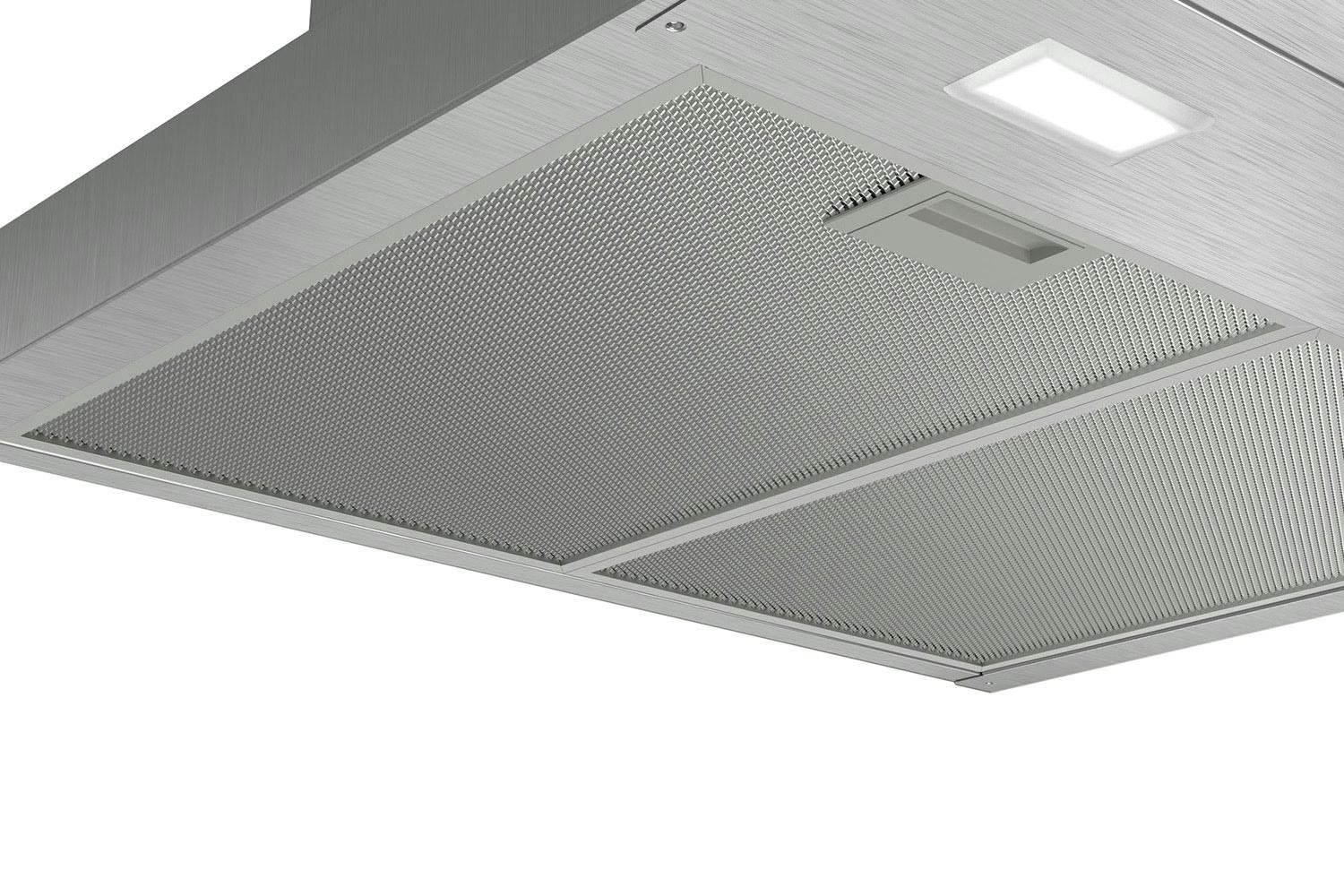 Reduced Noise Technology: Low-noise motor at 63 dB for quieter cooking • Energy-Saving LED Lighting: Two 1.5W LED bulbs for clear illumination • Washable Filters: Two aluminium grease filters for easy maintenance • Three Speed Settings: Adjustable extraction power up to 365 m³/h • Stainless Steel Design: Durable and stylish construction