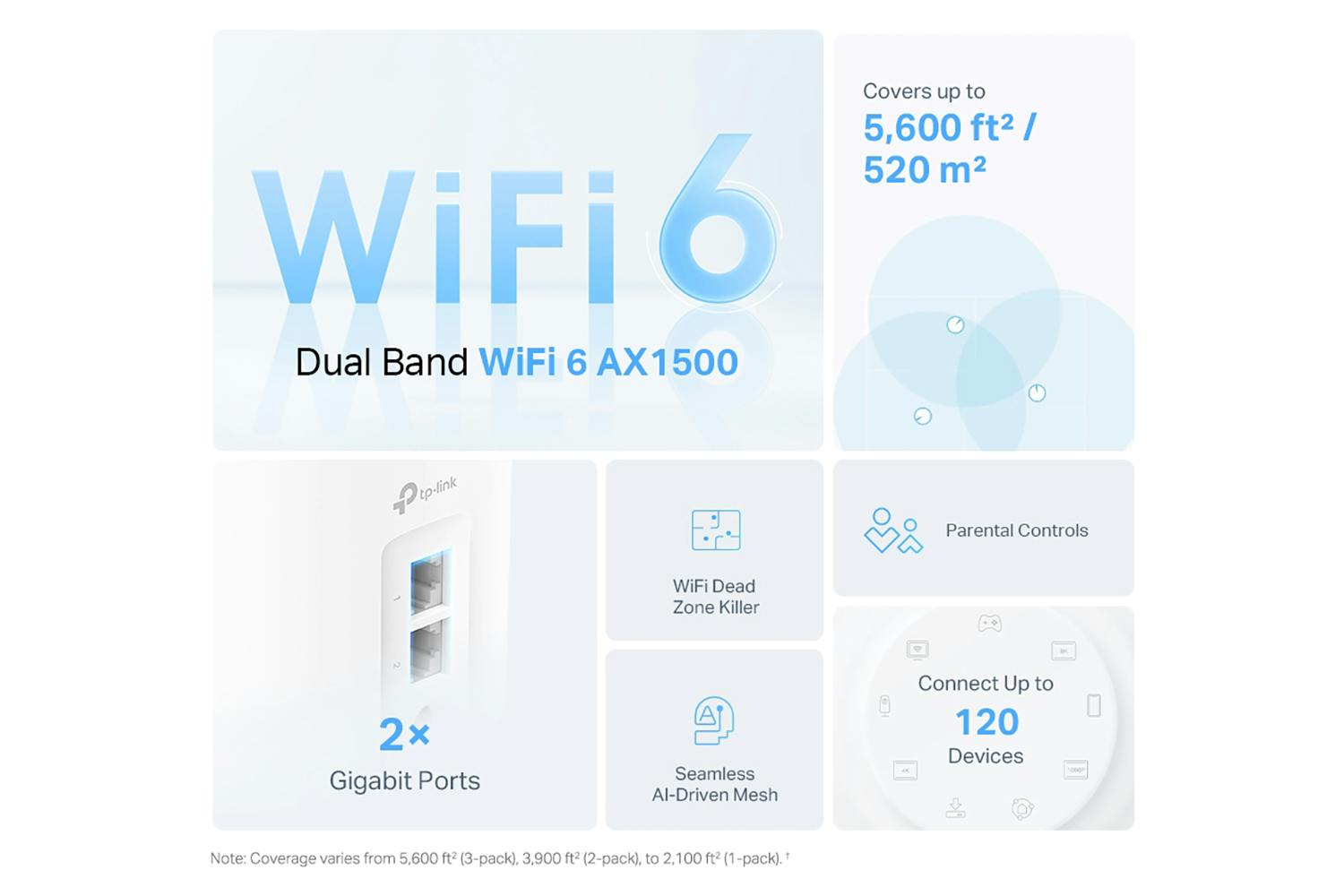 TP Link Deco X1500 3-Pack Wi-Fi 6 Mesh Deco X1500(3-pack) - AX1500 Whole Home Mesh Wi-Fi 6 System (3-pack) Faster Connections: Wi-Fi 6 speeds up to 1,500 Mbps-1,201 Mbps on 5 GHz...