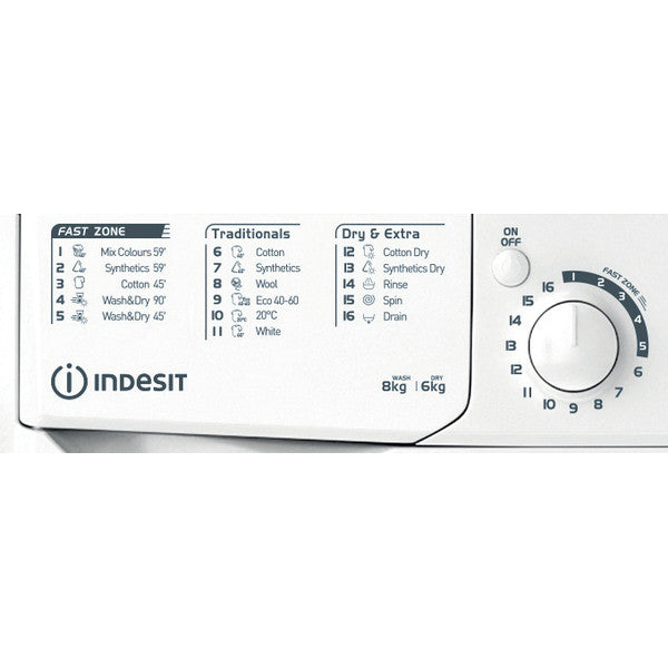 Indesit 8KG/6KG 1351RPM Freestanding Washer Dryer - White | EWDE861483W