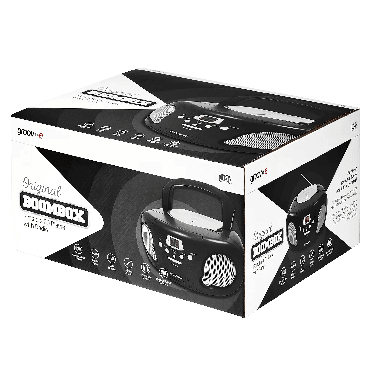 Groov-e Portable CD Player with Radio - Black | GVPS733BLK