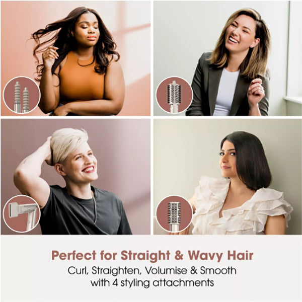 4 Styling Attachments: Curl, straighten, volumise & smooth • Auto-Wrap Curlers: Creates hassle-free curls in seconds • Damage-Free Styling: Controls heat to prevent extreme temperatures • Fast Drying Power: Speeds up your morning routine • Lightweight Design: Only 700g for effortless use