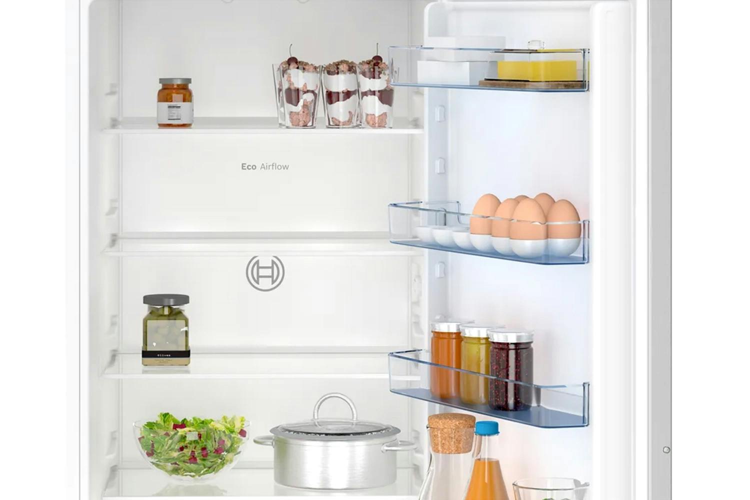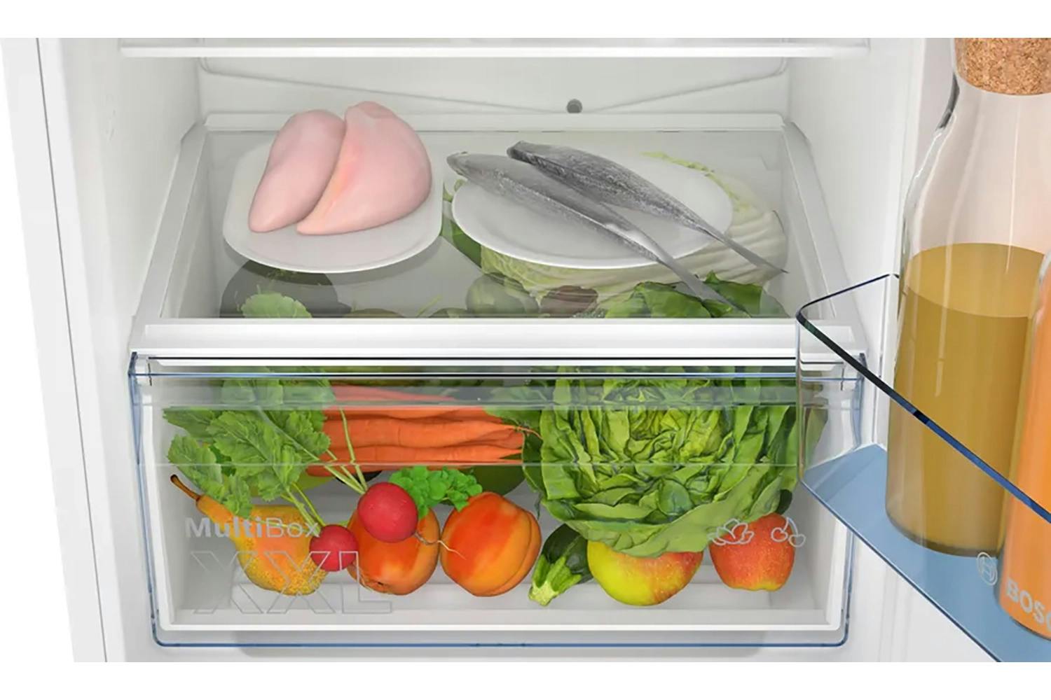 Built-in XL Design: 11% extra volume compared to standard models • MultiBox XXL: Extra-large drawer for fruit and vegetables • No Frost Technology: Never defrost again with automatic ice prevention • Quiet Operation: 34 dB for peaceful home environment • Eco Airflow: Even temperature distribution for fresher food