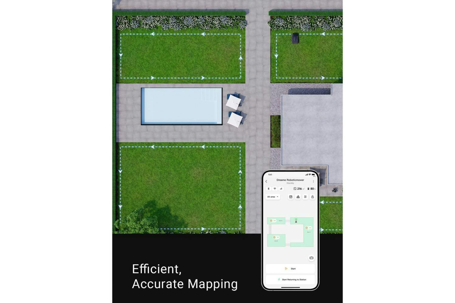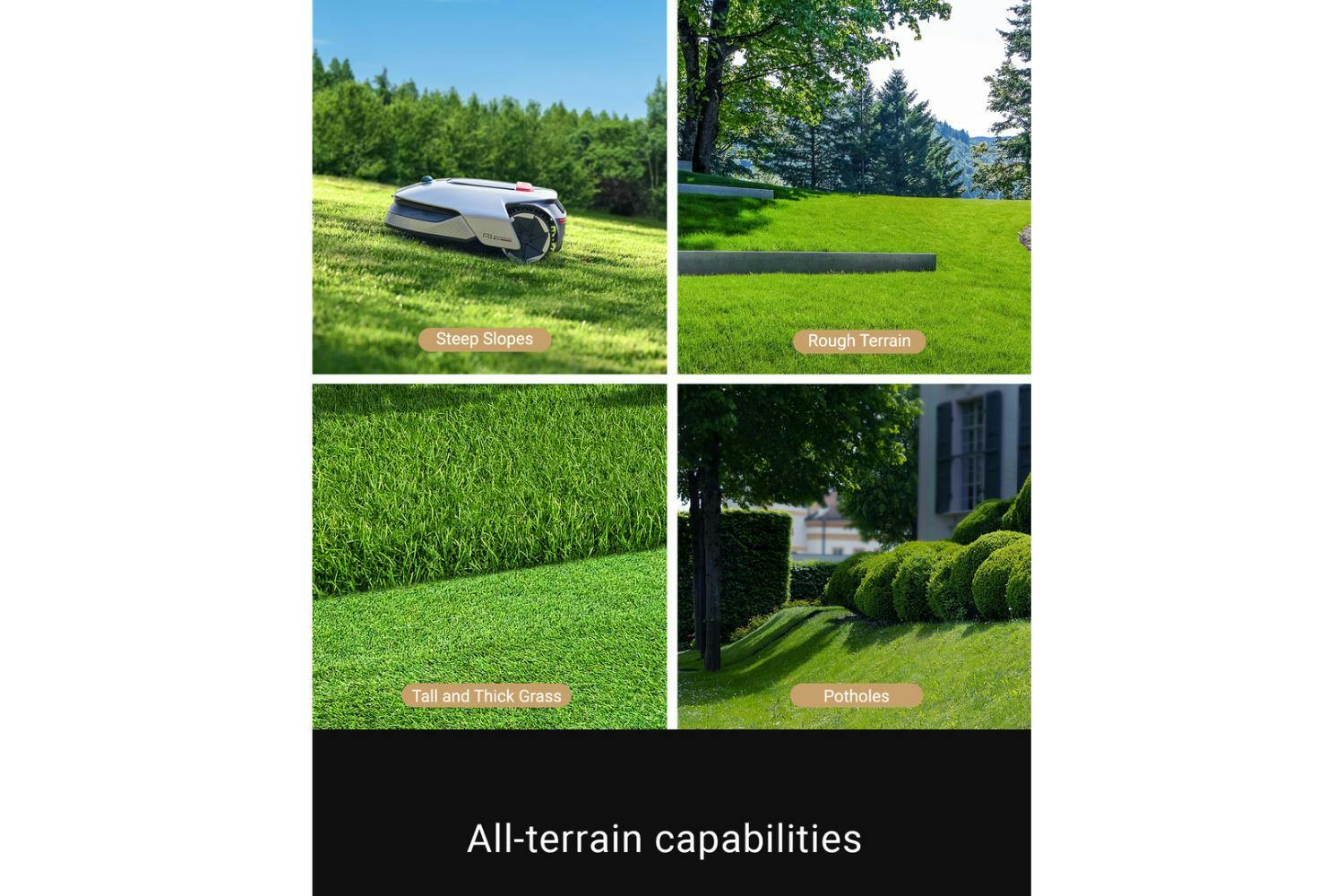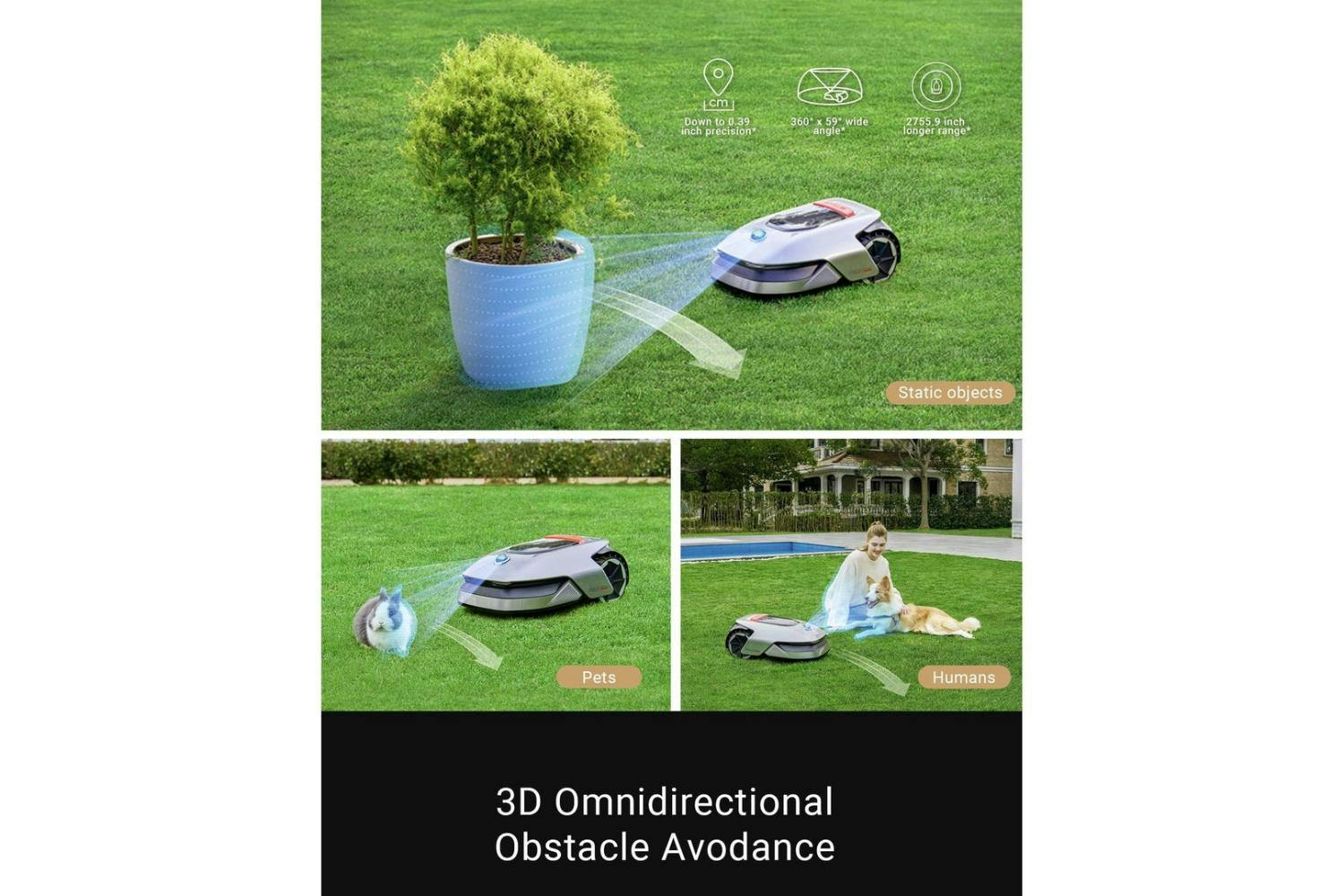 OmniSense™ Ultra Sensing System: Advanced 3D mapping and navigation without boundary wires • 3D Omnidirectional Obstacle Avoidance: Intelligently identifies and avoids 114 types of garden obstacles • U Path Planning: Ensures efficient and uniform lawn coverage for exceptional results • App-Controlled Cutting Height: Easy adjustment from 3-7cm via intuitive app interface • Continuous Mowing: Auto-returns to charging station and resumes work after recharging