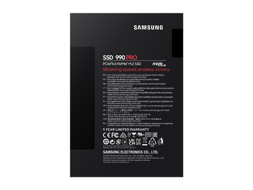 Samsung 990 PRO NVMe M.2 SSD, 1TB, PCIe 4.0, 7450MB/s Read, 6900MB/s Write, Internal SSD for Gaming and Video Editing, Black, MZ-V9P1T0BW