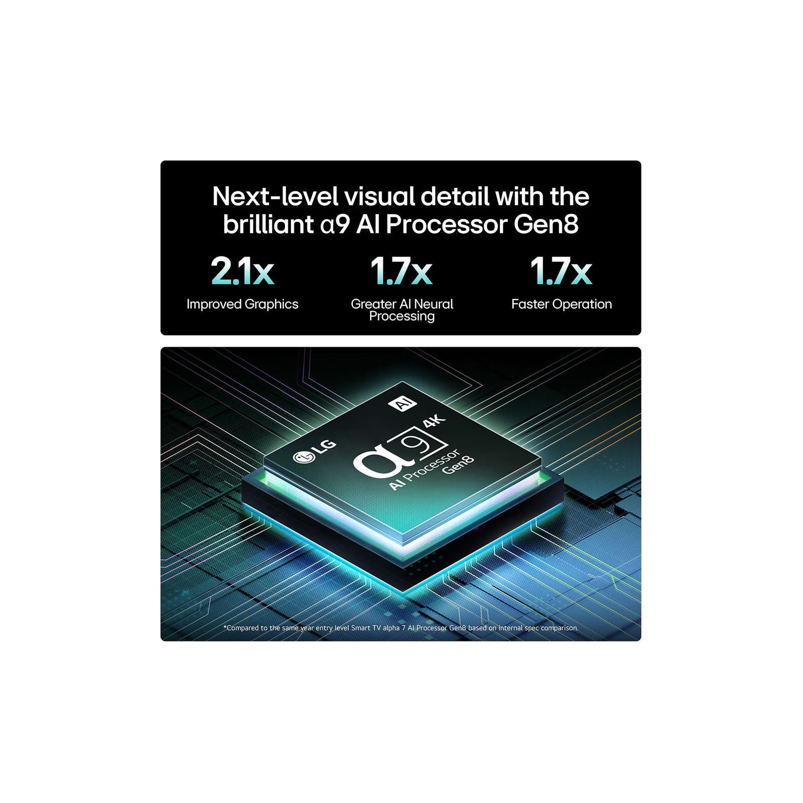 Perfect Black Technology: Self-lit OLED pixels provide infinite contrast and 100% colour accuracy • α9 AI Processor: Advanced processing with AI Super Upscaling for enhanced 4K content • Brightness Booster: Advanced algorithm delivers brilliant images in any lighting condition • Gaming Ready: 0.1ms response time with 4K@144Hz, VRR, G-Sync and FreeSync support • Smart webOS Platform: AI-powered interface with Magic Remote and 5-year update guarantee