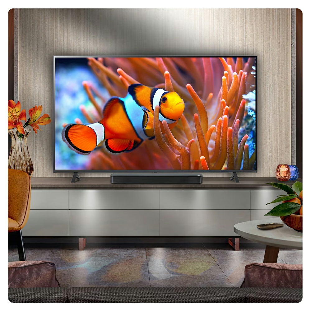 Bluetooth® connectivity – Stream music wirelessly from your smartphone. • TV Sound Sync – Connect easily to your LG TV via optical cable. • Compact design – Space-saving, fits easily into your home setup. • All-in-one solution – Enjoy quality sound for both TV and music.