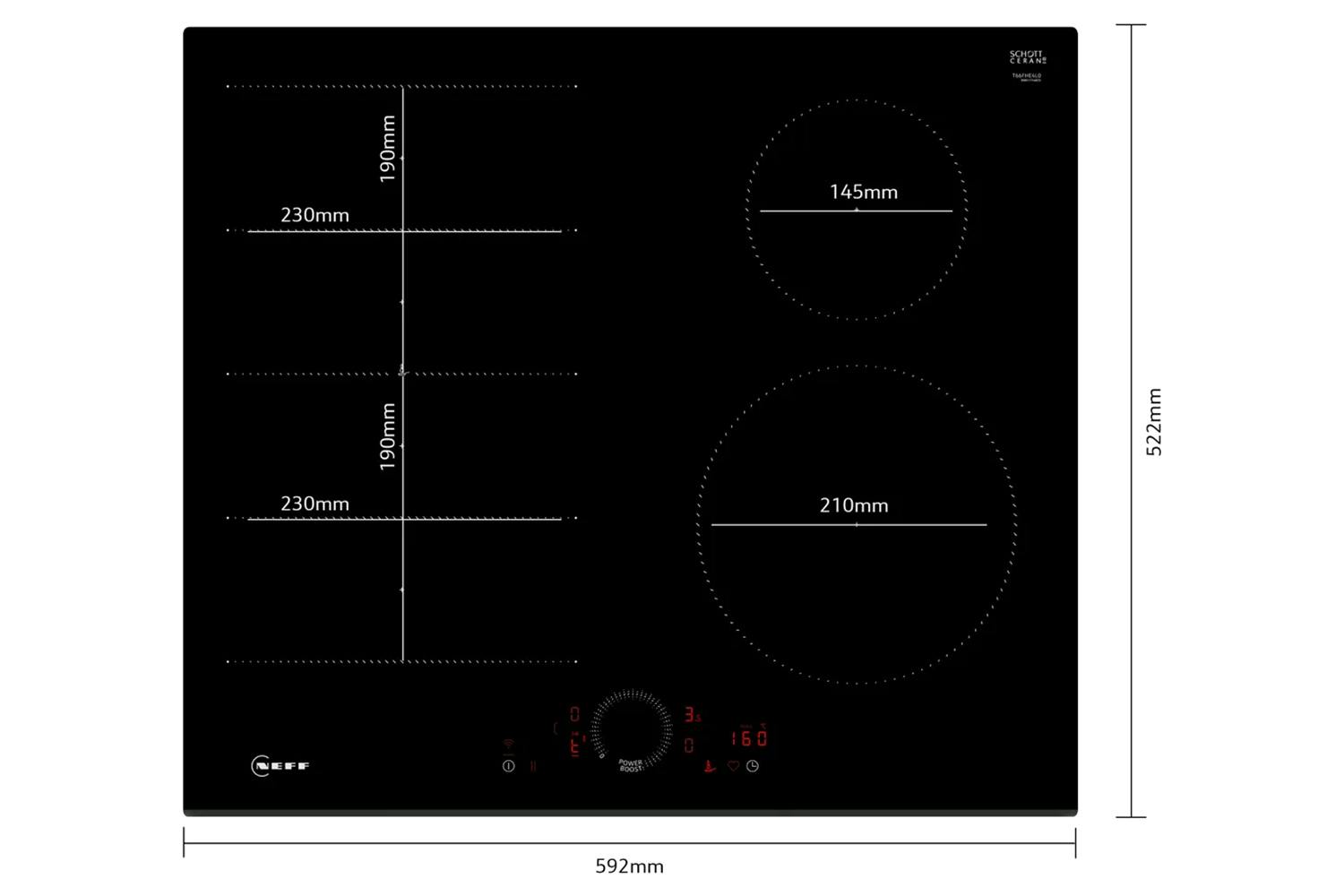 Twist Touch® Control: Select zones and power levels with a simple finger twist • FlexInduction Technology: Merge zones for larger pots or simultaneous cooking • Home Connect Integration: Remote monitoring and automatic hood control • Extended Frying Sensor: Prevents burning with temperature monitoring • Power Boost Function: Available on all 4 zones for faster heating