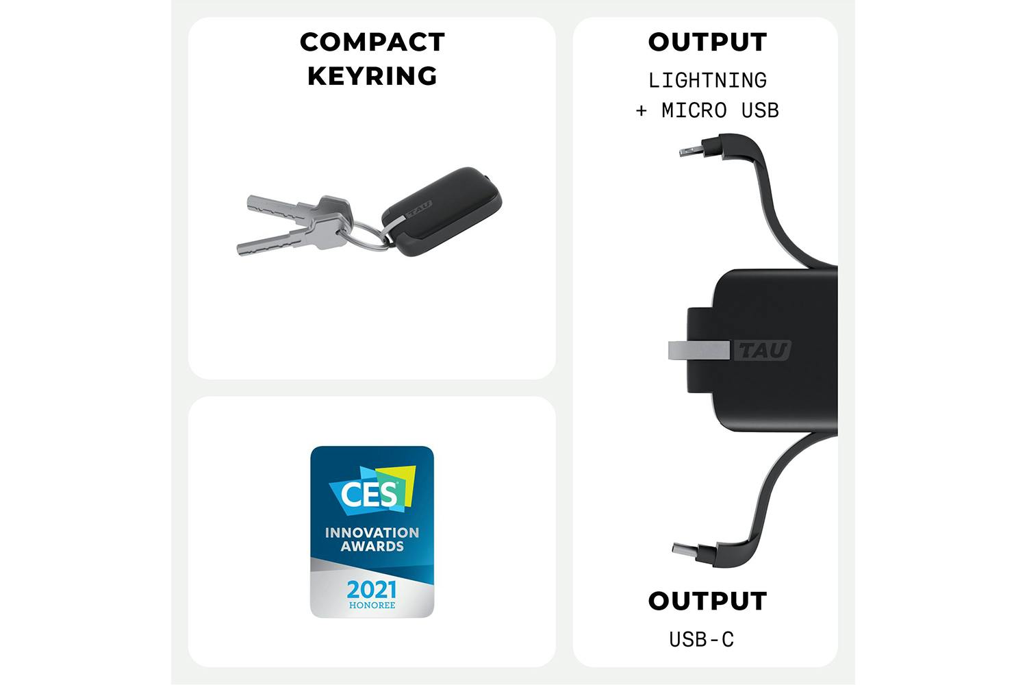 Smallest 3-In-1 power bank ever made • Always charged, always ready to use • Dual: Lightning for Apple devices (iPhone, iPad, iPad Air, Airpods) + MicroUSB devices • USB-C: Compatible with latest Android and Google phones and newest generation portable devices