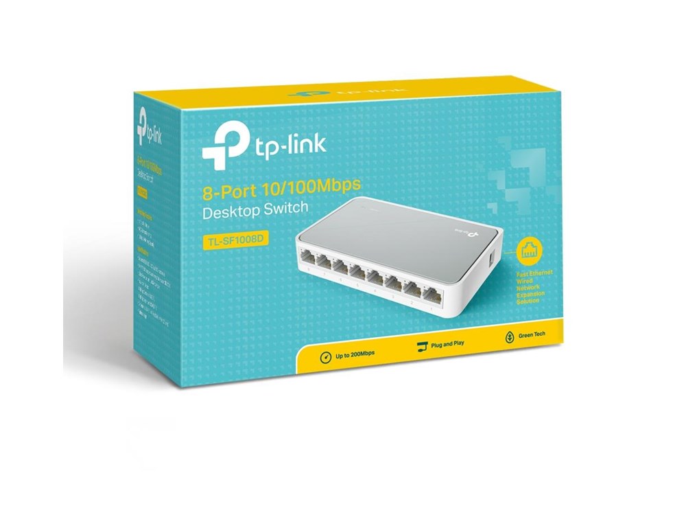 TL-SF1008D 8-port 10/100Mbps Fast Ethernet Switch provides 8 10/100Mbps Auto-Negotiation RJ45 ports. All ports support Auto MDI/MDIX function, eliminating the need for crossover...