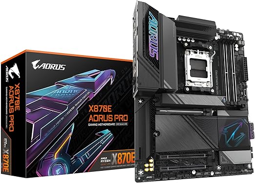 Amazon prices can change minute by minute. We try to keep them up to date, but always verify before purchase.GIGABYTE X870E AORUS PRO Motherboard - Supports AMD Ryzen 9000 CPUs, 16+2+2 Phase Digital VRM, up to 8000MHz DDR5 (OC), 3xPCIe 5.0, Wi-Fi 7, 2.5GbE LAN, USB 4